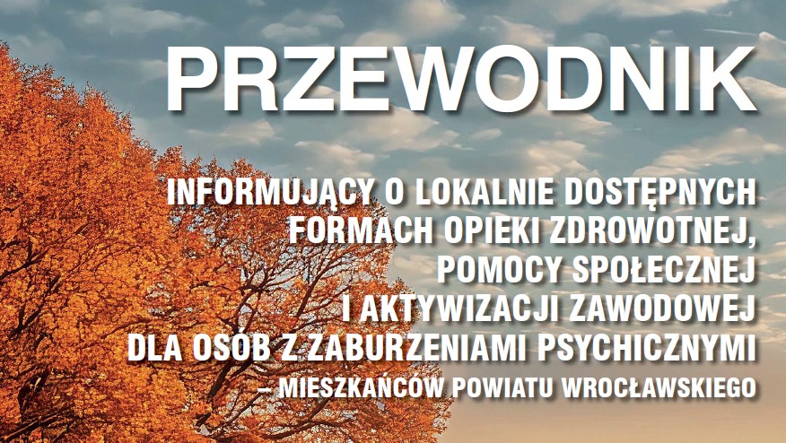 Powiat Wrocławski wydał PRZEWODNIK INFORMUJĄCY O LOKALNIE DOSTĘPNYCH FORMACH OPIEKI ZDROWOTNEJ, POMOCY SPOŁECZNEJ I AKTYWIZACJI ZAWODOWEJ DLA OSÓB Z ZABURZENIAMI PSYCHICZNYMI – MIESZKAŃCÓW POWIATU WROCŁAWSKIEGO. Celem publikacji jest ułatwienie dostępu do