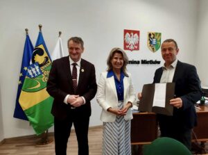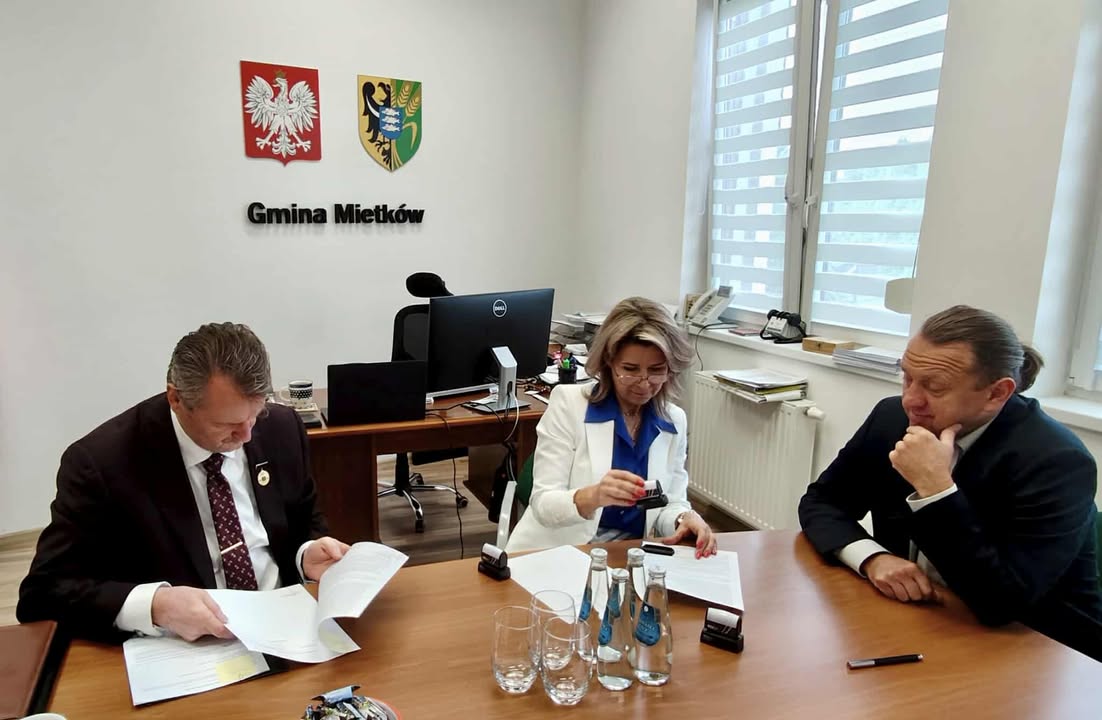 27 czerwca 2025 roku w obecności Hieronima Kurysia – Członka Zarządu Powiatu Wrocławskiego, Wójt Tomasz Sakuta wraz z nową Skarbnik Gminy – Aleksandrą Zając, podpisali porozumienie o wsparciu finansowym dla naszej gminy.