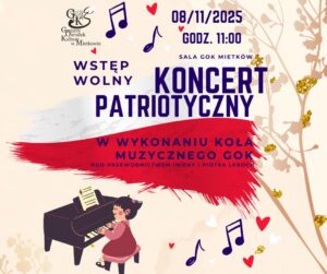 Gminny Ośrodek Kultury w Mietkowie już w najbliższą sobotę wprowadzi nas w obchody Narodowego Święta Niepodległości zapraszając serdecznie wszystkich mieszkańców na Koncert Patriotyczny, który odbędzie się 8 listopada 2025 r. o godz. 11:00 w sali GOK Mietków. Wystąpi Koło Muzyczne GOK pod przewodnictwem Iwony i Piotra Leroch.