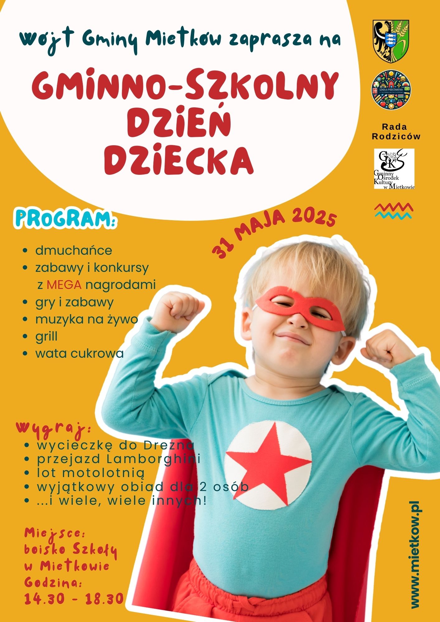 Już w najbliższą sobotę widzimy się na boisku przy szkole – świętujemy 🎉 Gminno-Szkolny Dzień Dziecka w Mietkowie