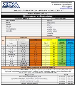 Mieszkańcy Gminy Mietków – informujemy, że dostępny jest nowy harmonogram wywozu odpadów komunalnych oraz innych odpadów na 2026 rok