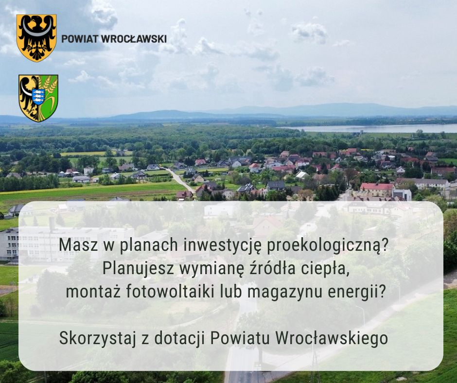 Masz w planach inwestycję proekologiczną? Planujesz wymianę źródła ciepła, montaż fotowoltaiki lub magazynu energii? Skorzystaj z dotacji Powiatu Wrocławskiego Celem dotacji jest poprawa jakości środowiska, ograniczenie emisji szkodliwych substancji do