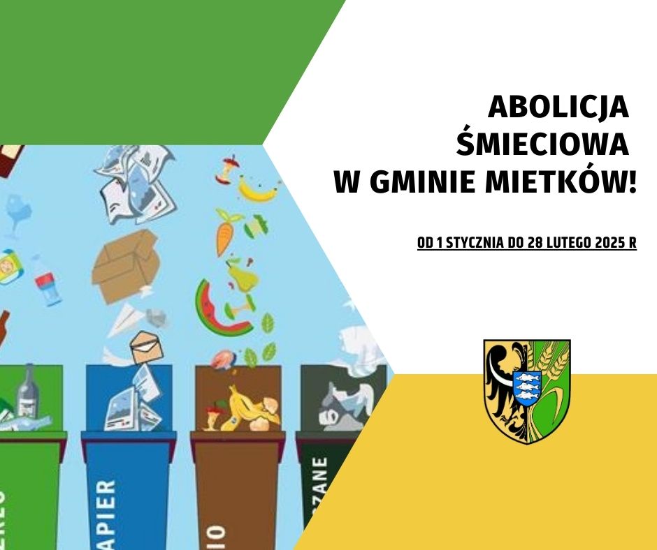 Wójt Gminy Mietków, wzorem innych gmin, wprowadza abolicję śmieciową w terminie od 1 stycznia do 28 lutego 2025 r.. W tym okresie mieszkańcy mogą bez konsekwencji zgłaszać osoby, które powinny