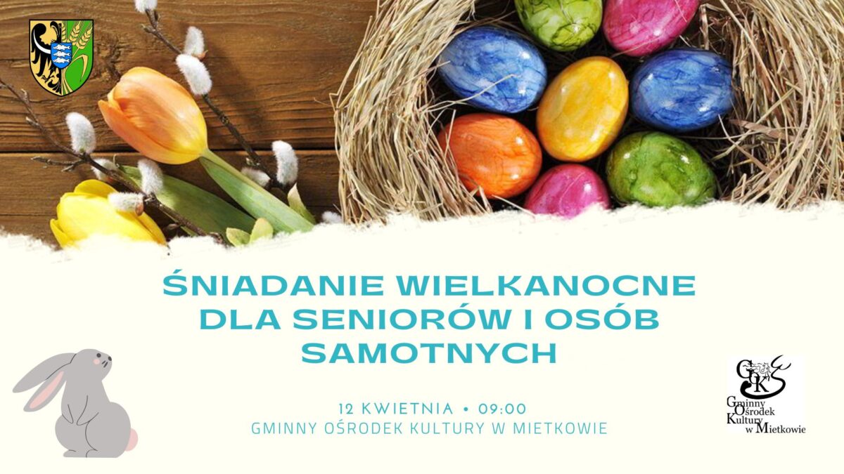 Wójt Gminy Mietków wraz z Gminnym Ośrodkiem Kultury serdecznie zapraszają wszystkich seniorów oraz osoby samotne z terenu naszej gminy Mietków na wyjątkowe Świąteczne Śniadanie Wielkanocne. Niech ten dzień stanie się