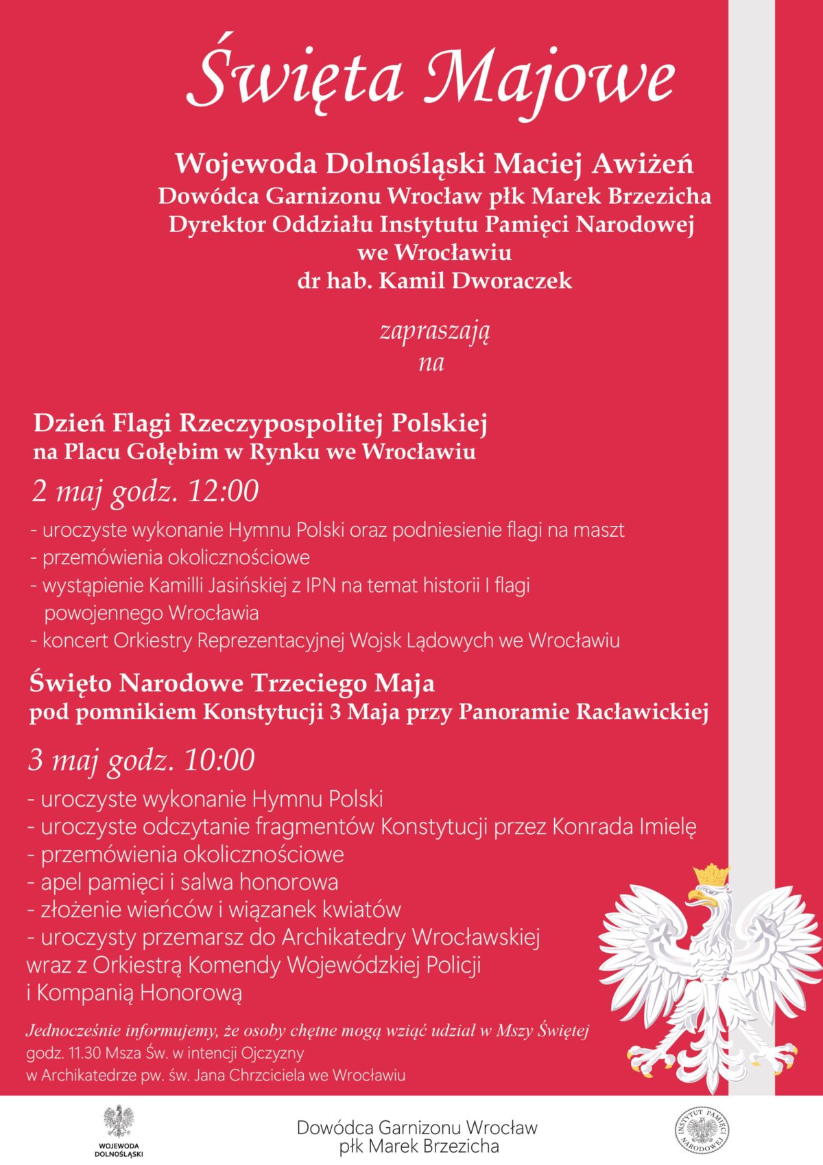 Informacja przekazana przez Dolnośląski Urząd Wojewódzki we Wrocławiu Szanowni Państwo, Wojewoda Dolnośląski Maciej Awiżeń, Dowódca Garnizonu Wrocław płk Marek Brzezicha Dyrektor Oddziału Instytutu Pamięci Narodowej we Wrocławiu dr hab.