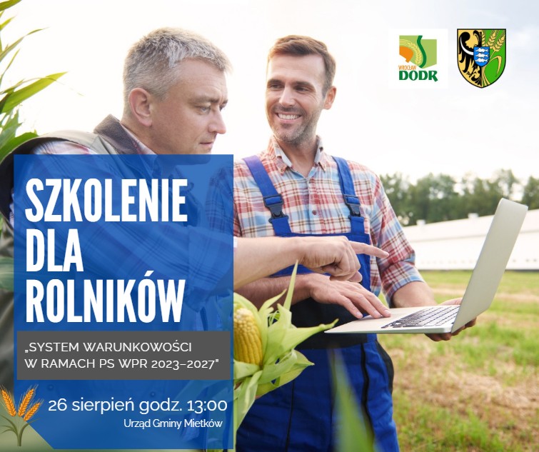 Serdecznie zapraszamy na szkolenie dla rolników, które poprowadzi Kacper Gołębiowski – Doradca PZDR Oddział Wrocław Temat i termin szkolenia: „System warunkowości w ramach PS WPR 2023–2027” 26 wrzesień godzina 13:00 urząd